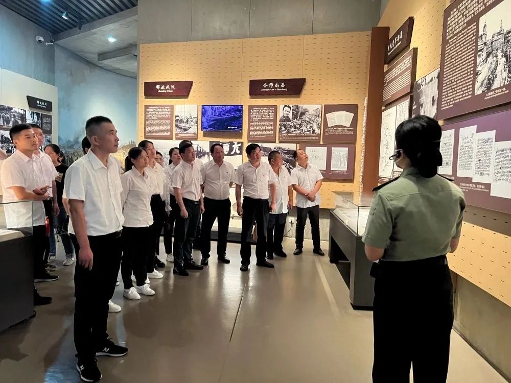 随后,在讲解员的带领下,大家依次参观了战前形势、战役准备、突破江防、战役胜利、人民支前和英烈业绩六大展厅,瞻仰了渡江战役烈士名录,在书、布、枪等历史文物和声、光、电的现代科技中回顾“钟山风雨起苍黄,百万雄师过大江”的厚重历史,感受革命先烈们勇往无畏、乐观豪迈的革命英雄主义精神。
