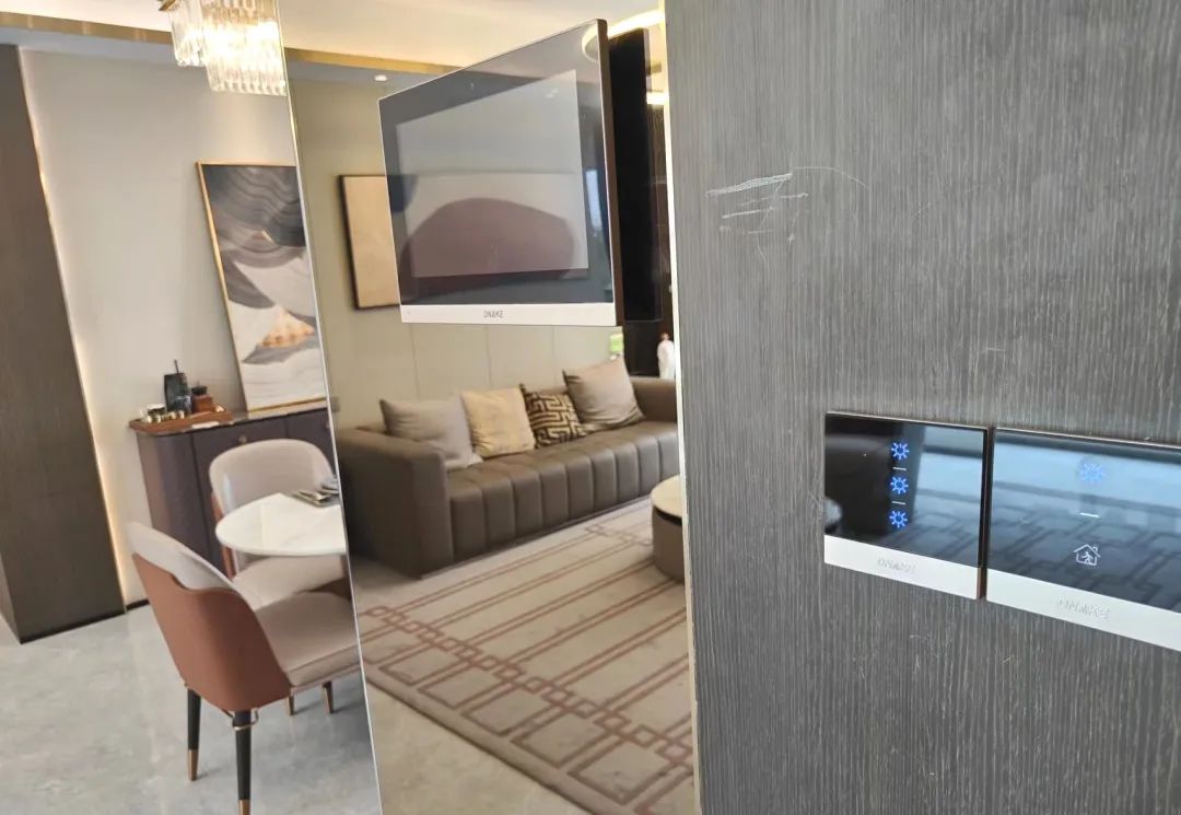 济高·珑悦府还采用了狄耐克三合一温控器,可实时监测室内温度、湿度和空气质量,当室内温度、湿度、PM2.5、二氧化碳等数值超过设定阈值时,系统自动联动开启空调、地暖或新风系统等设备。