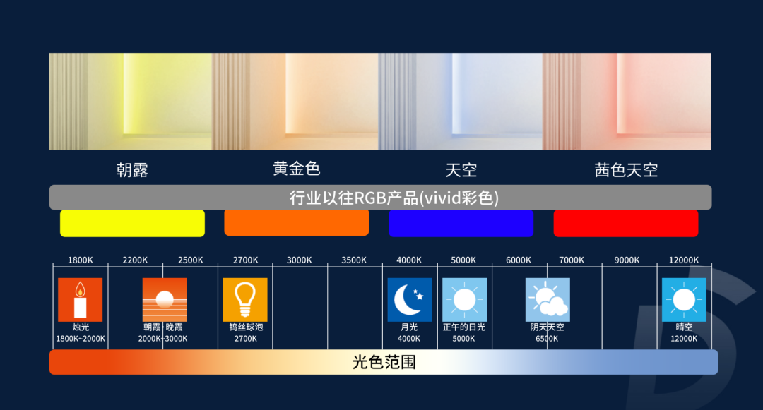 光源于自然,也归于自然。当清晨高色温的日光洒进屋内,告诉着人们应该清醒,而工作时间的冷白光,也能使人保持更高的专注度。当夜幕逐渐降临,暖黄色的夕阳又在提醒着人们休息时间到,身体变得放松,内心逐渐平静,帮助快速入睡。