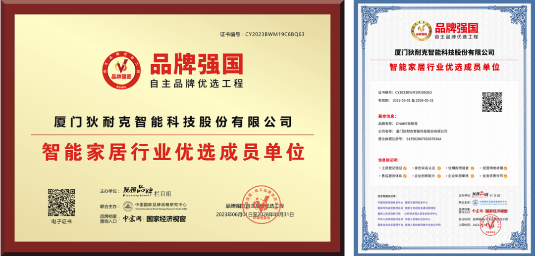 狄耐克正式成为中央广播电视总台“品牌强国工程”智能家居行业优选成员单位!企业信息已被录入品牌强国优选工程数据库,在国家级平台向公众展示品牌形象。