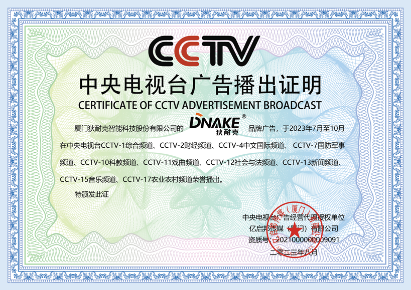 自2021年至今,狄耐克与央视已成功携手三次,展现了狄耐克强大的企业实力与智造力量。此次,狄耐克“1+7+N”智慧居家解决方案在央视十大频道进行为期三个月的高频次多台滚动轮播。通过场景化的全屋智能设备联动展示,让狄耐克“智慧居家好伴侣”的品牌理念深入人心,进一步提升品牌知名度和美誉度!