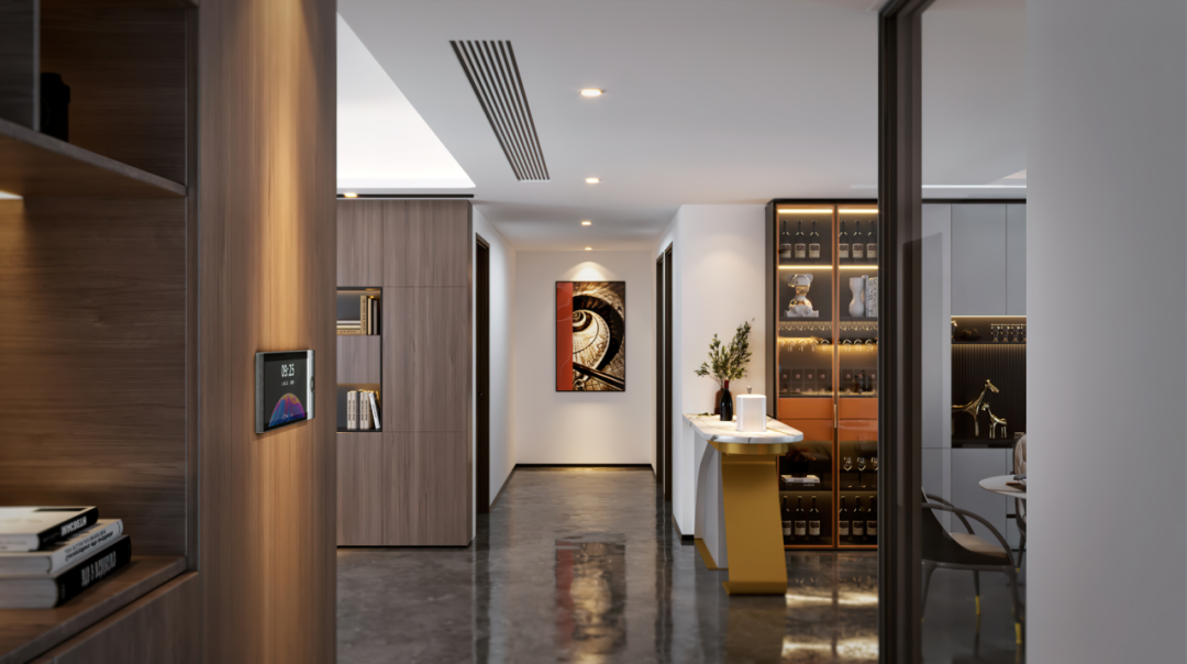 在狄耐克智慧家庭中,智能玄关不再只是一个门厅装饰,更是一个功能强大的智能控制中心,即便身在玄关也可对家中任意设备进行控制。