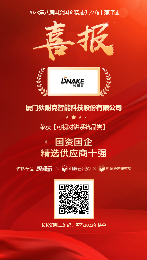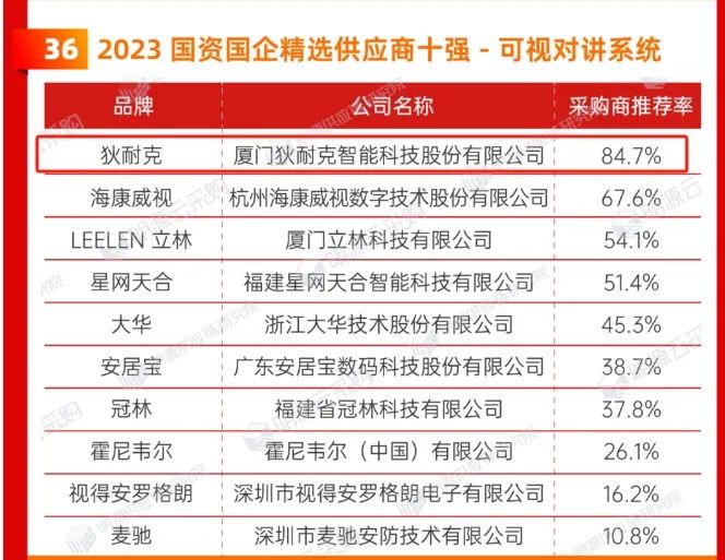 狄耐克可视对讲以84.7%的采购商推荐率稳居“2023国资国企精选供应商十强”榜首。