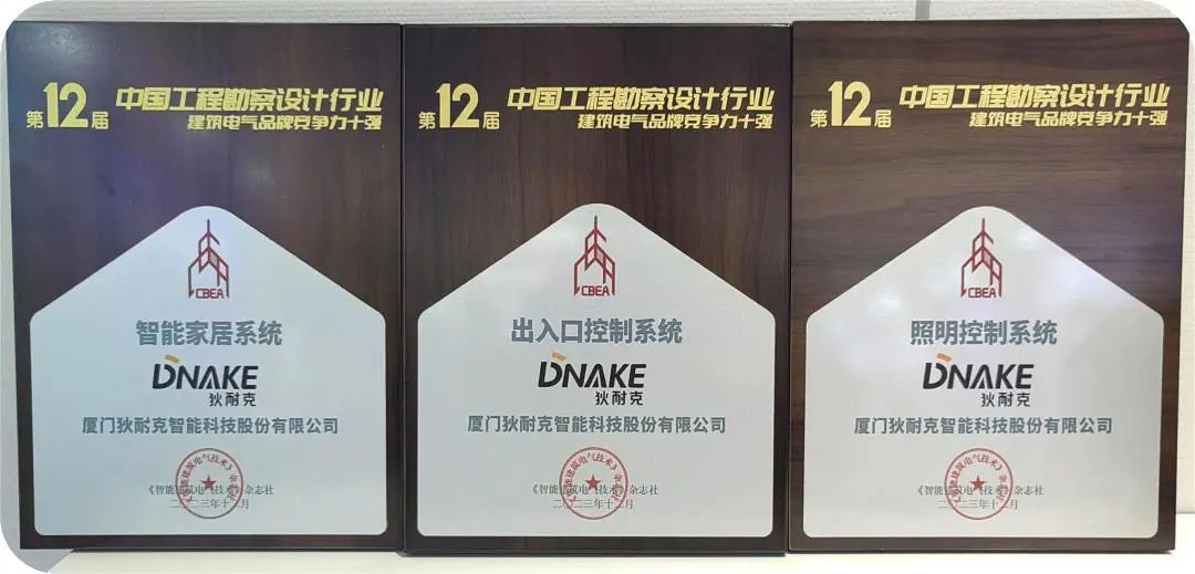 近日,中国建筑节能协会指导的“中国建筑节能协会电气分会2023年会论坛”在苏州举行,大会同期发布了“2023中国工程勘察设计行业·建筑电气品牌竞争力榜单”,狄耐克揽获智能家居系统、照明控制系统、出入口控制系统三大领域“品牌竞争力十强”奖项。