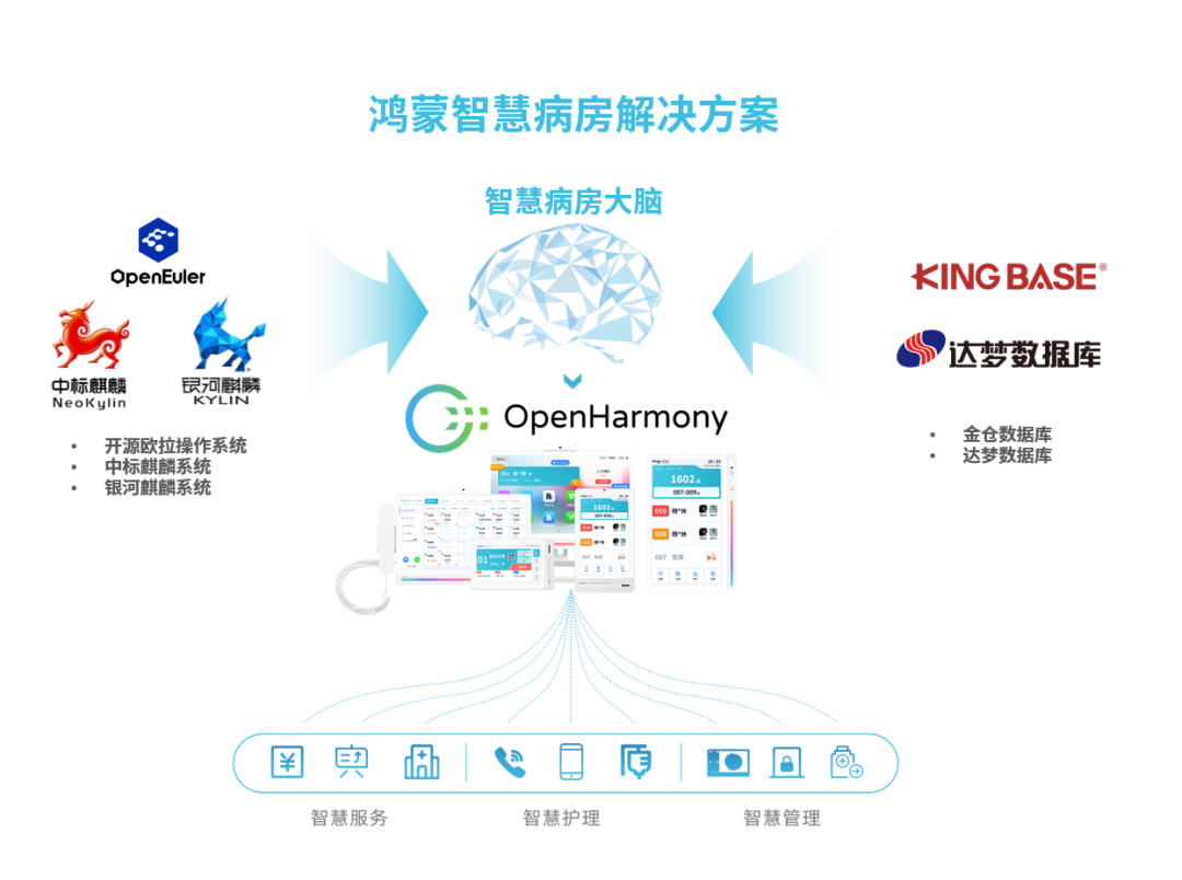 狄耐克鸿蒙智慧病房解决方案已实现全要素、全链路国产化。数据库方面支持金仓、达梦等国产数据库;服务器端适配中标麒麟、银河麒麟、开源欧拉等国产操作系统;终端搭载开源鸿蒙系统。方案通过自研SIP音视频对讲技术与鸿蒙系统融合,围绕三大交互场景,以开源鸿蒙智能终端为核心构建智慧病房国产化体系,提高医护工作效率,改善患者就医体验,确保患者医疗数据安全可靠。