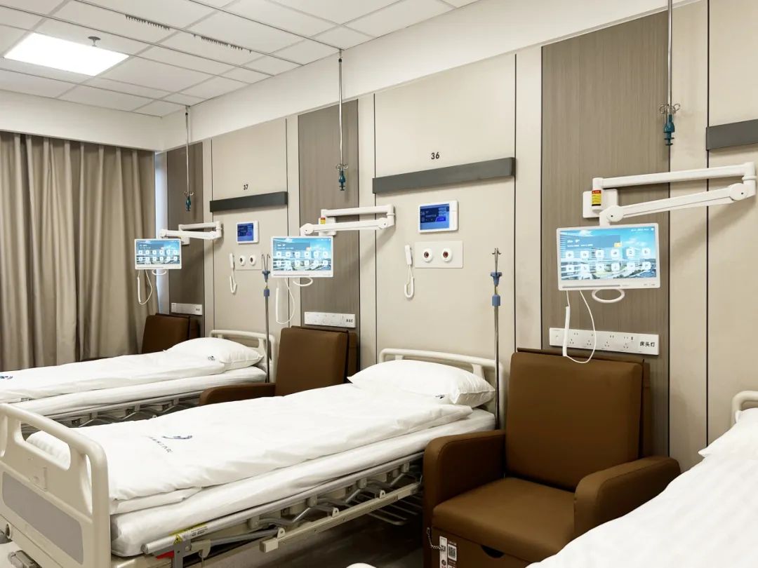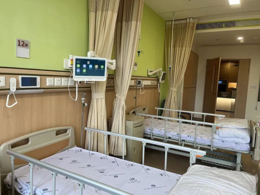 智能床旁交互终端不仅支持费用查询、电子病历查阅、在线点餐等基础功能,还能通过与智能环境控制系统联动,让患者动动手指就能调节病房灯光亮度、空调温度、窗帘开合。患者躺在病床上,亦能轻松掌控住院环境的舒适度。