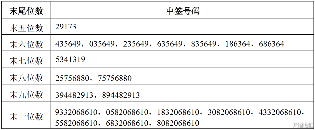 惠云钛业(300891.SZ)披露向不特定对象发行可转换公司债券中签号码,具体如下: