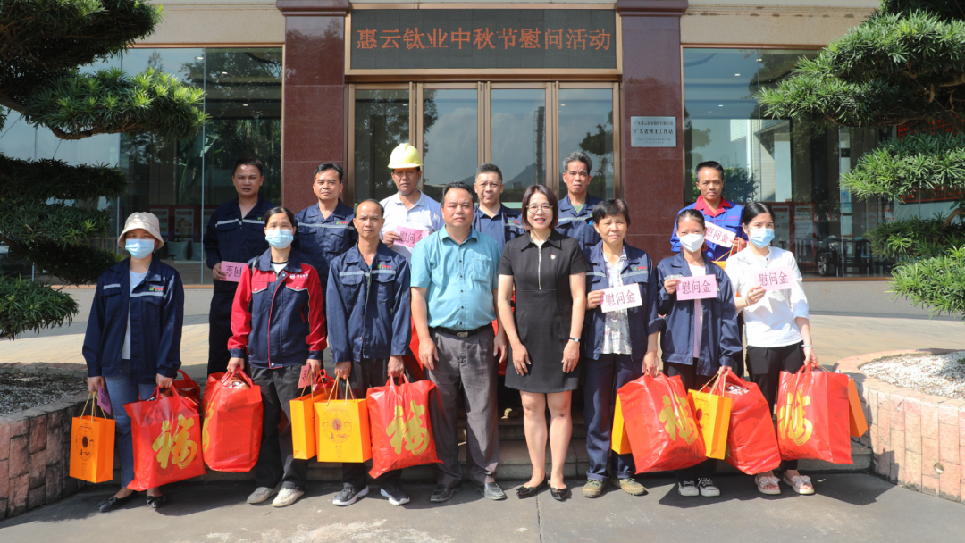 9月26日上午,值此中秋佳节到来之际,广东惠云钛业股份有限公司开展中秋慰问活动,公司党委书记李惠文、工会主席谢镜高出席活动并现场派发慰问礼品。
