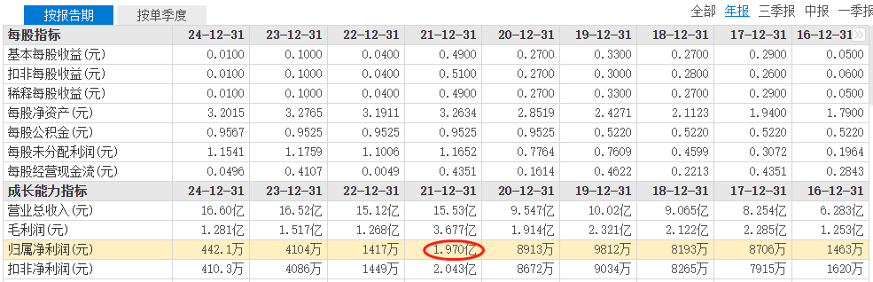 上市次年即2021年,惠云钛业净利为截至目前最高。2016年至2024年,惠云钛业归属于上市公司股东的净利润分别为0.15亿元、0.87亿元、0.82亿元、0.98亿元、0.89亿元、1.97亿元、0.14亿元、0.41亿元、0.04亿元。