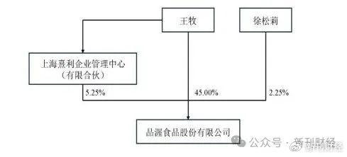 据其2024年年报显示,品渥食品股东王牧、徐松莉系夫妻关系,且王牧为公司股东上海熹利企业管理中心(有限合伙)的实际控制人。经统计,截至2024年底,王牧及其一致行动人合计持有品渥食品约52.5%的股份。