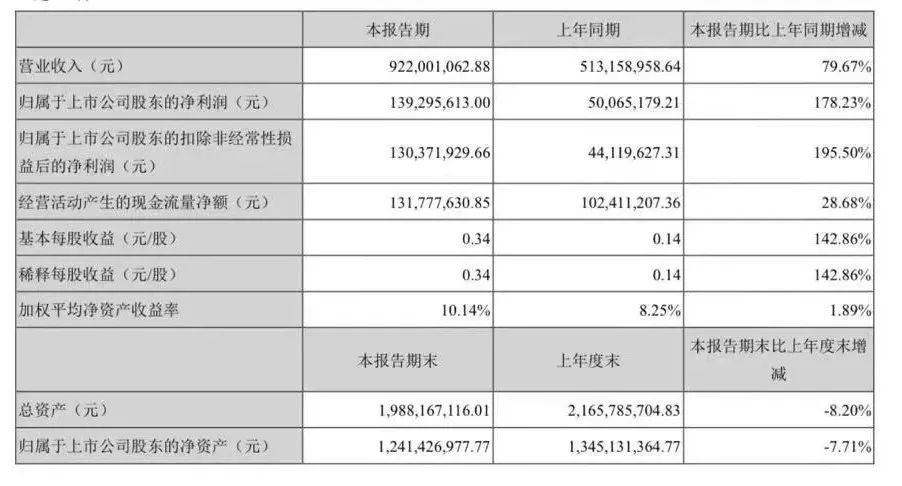 8月8日,火星人发布半年度业绩报告。报告显示,2021年上半年火星人实现营业收入约9.22亿元,同比增长79.67%;归属于上市公司股东净利润盈利约1.39亿元,同比增长178.23%;基本每股收益盈利0.34元,同比增长142.86%。