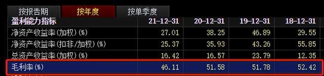 大笔营销带来的一个影响是,从2018年至2021年,火星人毛利率从52.42%下降至46.11%,4年合计下滑6.31个百分点。