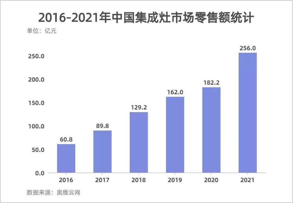 值得一提的是,火星人此前的业绩高增长有两个背景:一是火星人营收、利润的体量相对较小,容易取得更高的增速;二是集成灶市场整体保持了高增长态势,奥维云网数据显示,中国集成灶市场规模由2015年的36亿元飙增至2021年的256亿元,复合增长率高达32.34%。
