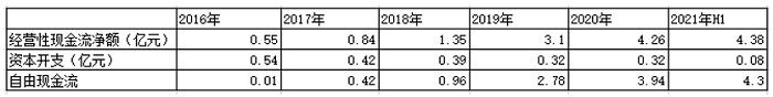 不仅如此,2021年上半年,公司经营性现金流净额为4.38亿元,同比增长279.71%,超过了同期净利润。此外,公司销售费用率为9.7%,与2020年同期基本保持持平;公司管理费用率为4.1%,较2020年同期下降约2.2个百分点。