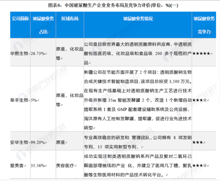 据前瞻产业研究院报告显示,国内的玻尿酸生产企业还有华熙生物、安华生物等多家公司。