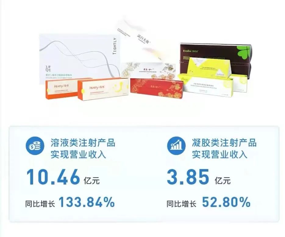 其中,溶液类注射产品是其收入的主要来源,实现营收10.46亿元,同比增长133.84%;凝胶类注射产品实现营收3.85亿元,同比增长52.80%。