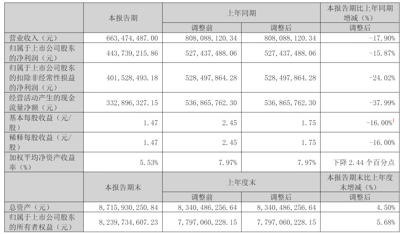 爱美客2025年第一季度净利为4.44亿元,较上年同期的5.27亿元下降15.87%;扣非后净利为4亿元,较上年同期的5.28亿元下降24%。