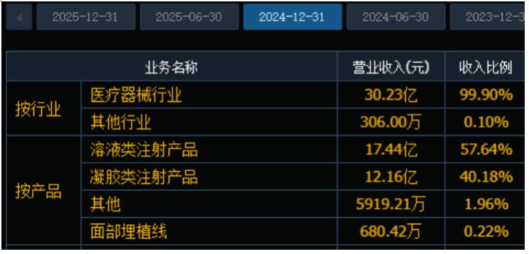 (2025年爱美客营收按产品分类,来源:同花顺)