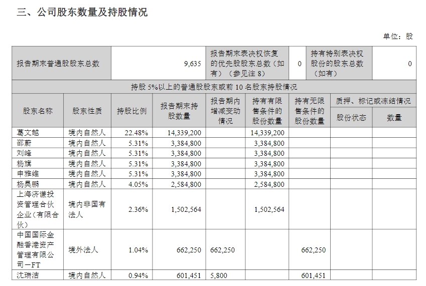 据上海凯鑫2023年半年报,葛文越、邵蔚、申雅维、刘峰、杨旗、杨昊鹏6名自然人股东为公司的实际控制人。截至报告期末,葛文越持股比例为22.48%,邵蔚、刘峰、杨旗、申雅维持股比例均为5.31%,杨昊鹏持股比例为4.05%。
