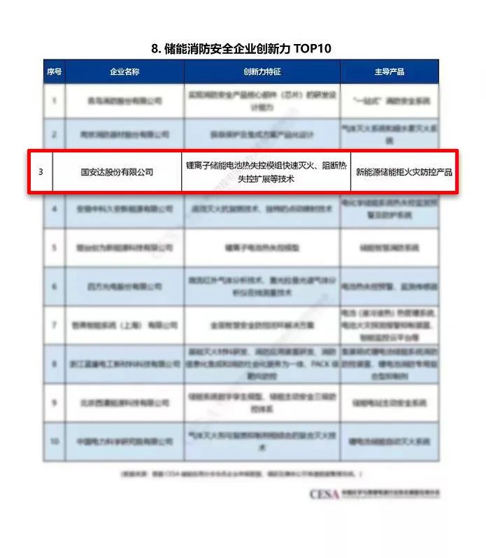 4月26日,中关村储能产业技术联盟(CNESA)举行线上发布会,正式发布了《储能产业研究白皮书2022》。国安达(300902)凭借丰富的智能消防产品研发经验、业内突出的研发创新能力,率先掌握锂离子储能电池热失控模组快速灭火、阻断热失控扩展等技术,创新性推出新能源储能柜火灾防控产品,并联合权威科研机构与重大用户单位,持续推进高新消防安全技术应用,稳居储能消防安全企业创新力前列。