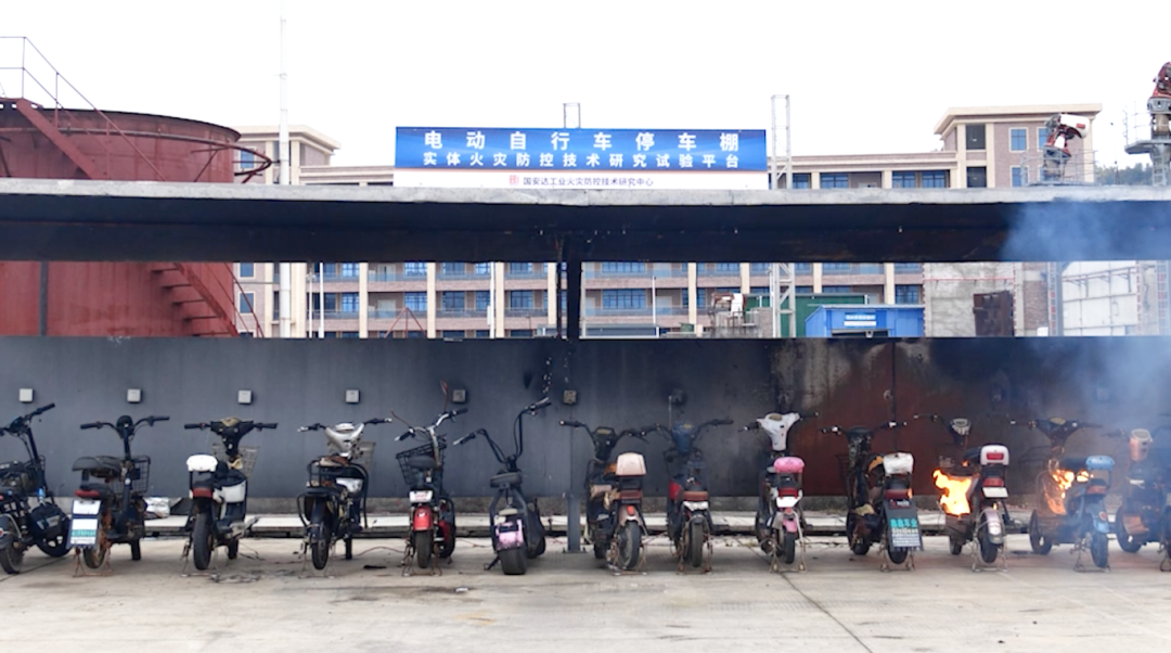 自行车棚固定式灭火系统的灭火效能已经多次实体真火试验验证,其中,参与的“漳州市电动自行车火灾模拟实验”“龙华区电动自行车真火灭火实验”等多项模拟试验和实战过程中,随着电动自行车电池过充爆燃,火灾探测器即刻识别,系统发出声光报警并启动灭火程序,安装于顶部的雾化喷头高效释放灭火剂,覆盖式扑救火情并持续抑制,在极短时间内,将明火全部扑灭,整个过程充分展现了智能化、自动化消防系统针对电动自行车火灾的优越性能,实验结果有力地证实了灭火系统在火灾发生初期的高效防控能力和后期的长效抑制能力。