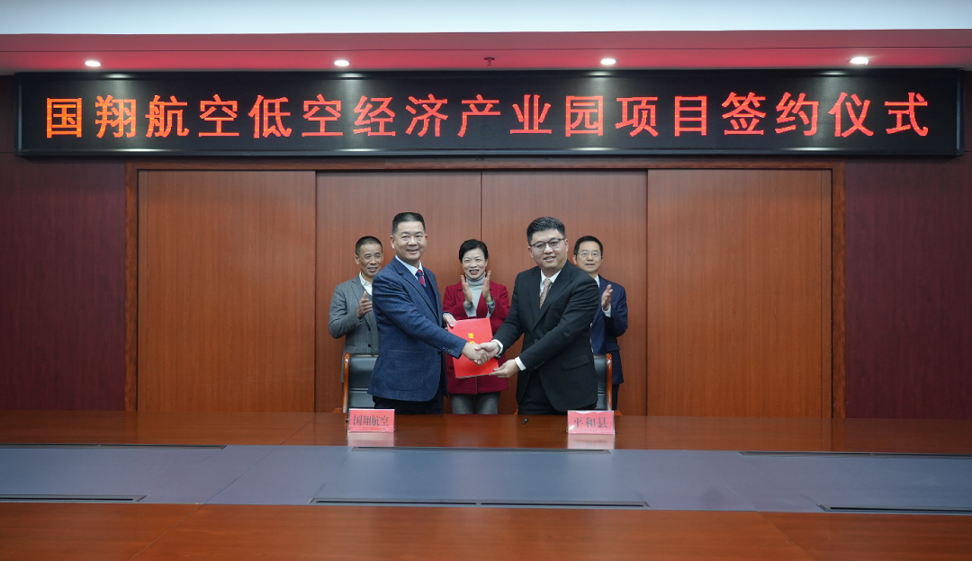 12月19日,国安达股份有限公司控股子公司——国翔航空(福建)有限公司与平和县人民政府正式签订“国翔航空低空经济产业园”项目合作协议。