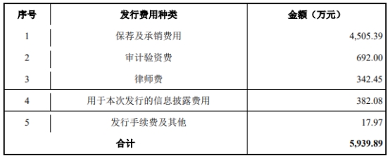 本次发行保荐机构(主承销商)为东吴证券股份有限公司,保荐代表人为吴昺、张玉仁。本次发行的发行费用总额为5,939.89万元(发行费用均为不含增值税金额)。