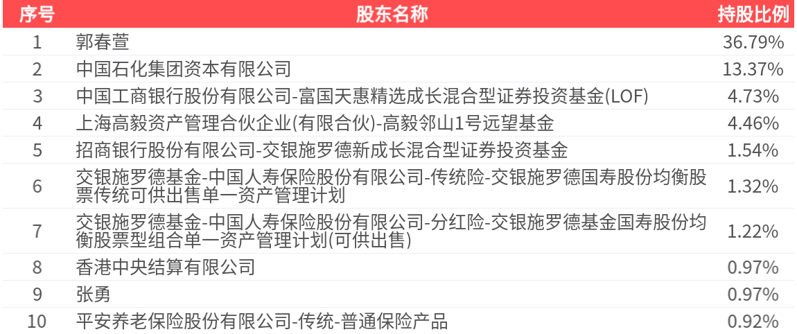 公司股东户数为9281户,前十大股东持股数量为1.93亿股,占总股本比例为66.28%,前十大股东持股情况如下: