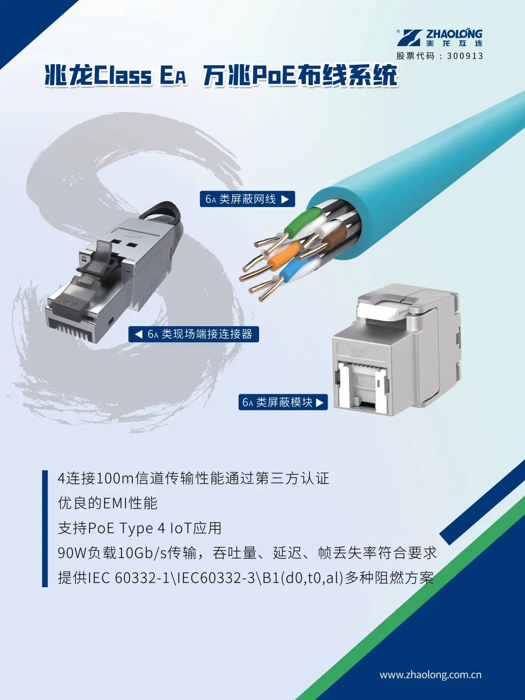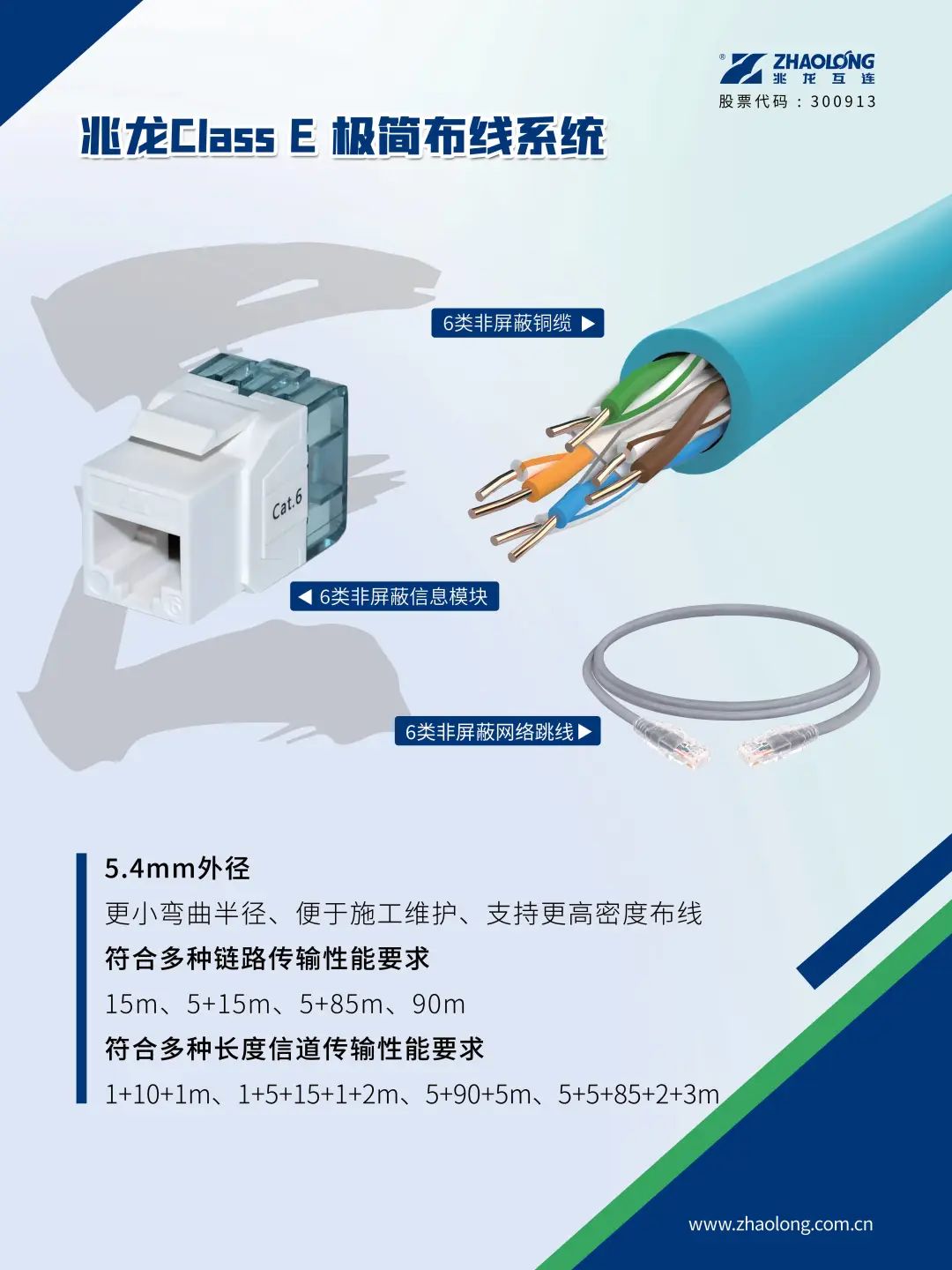兆龙互连为本次展会主要带来的产品有:兆龙Class E极简布线系统、Class Ea万兆PoE布线系统等布线系统解决方案,ACC(有源铜缆),以太网高速铜缆解决方案、高速互连内外部连接产品方案等。