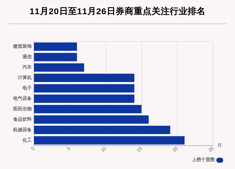 从券商对行业的关注度来看,券商关注个股数居前的行业分别是化工、机械设备、食品饮料。