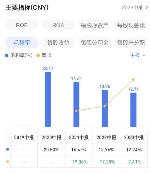 毛利率方面,2023上半年,特发服务毛利率为12.74%。2020上半年、2021上半年、2022上半年,特发服务毛利率分别为20.53%、16.62%、13.76%。