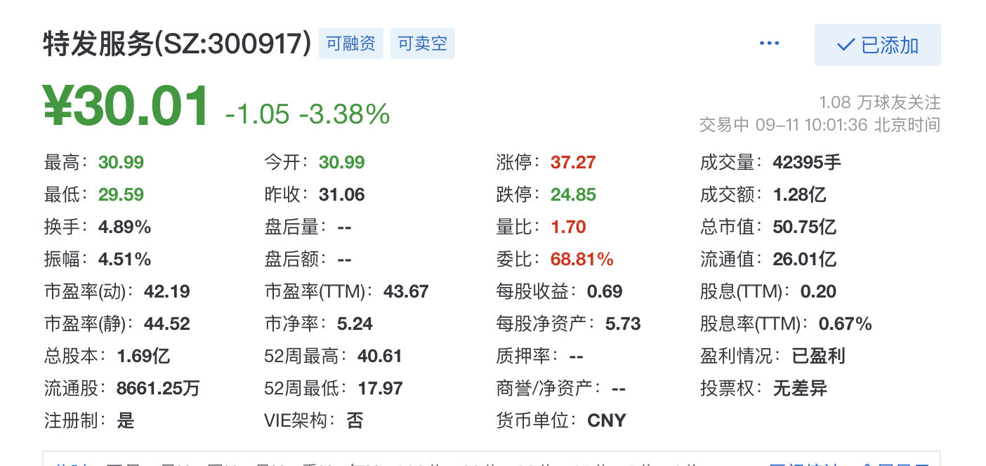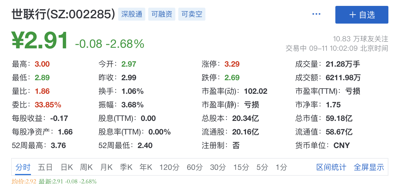 9月11日,A股房地产服务开盘下挫。截至发稿时,特发服务跌3.38%,世联行、新大正等跟跌。