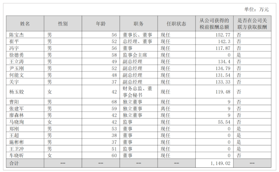 此外,2023年董事长陈宝杰、总经理崔平的税前报酬总额分别为152.77万元、142.3万元。如今崔平又兼任公司首席合规官,是否会涨薪?