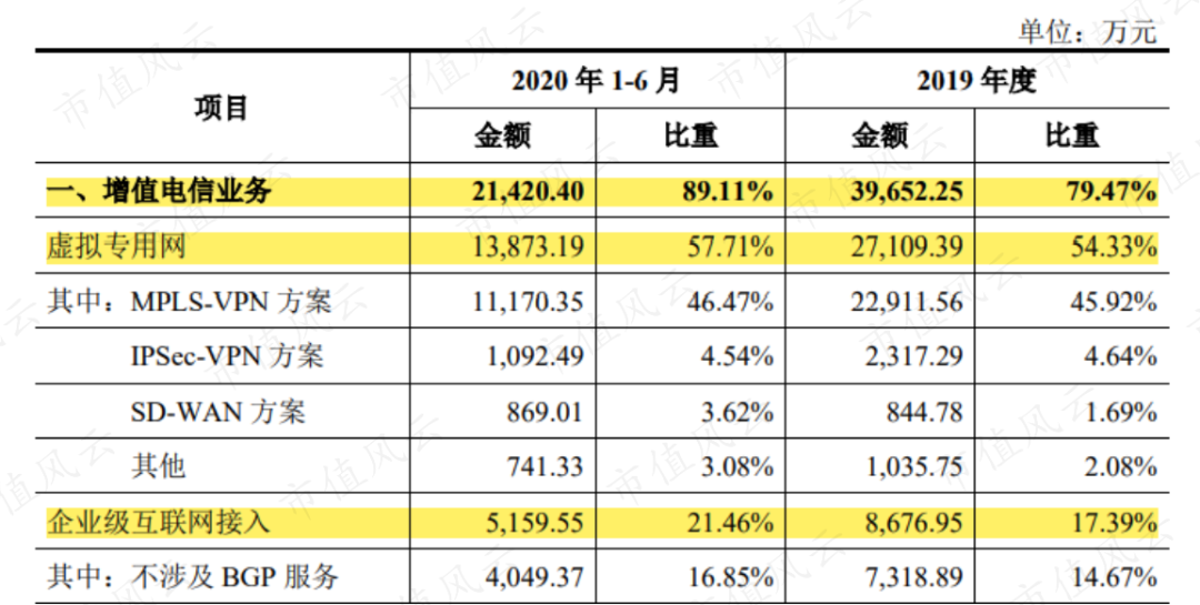 其中,增值电信业务下的虚拟专用网服务,是公司的主要收入来源,占总营收的一半以上。