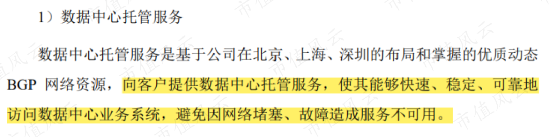 即数据中心托管业务,尴尬的是,这项业务只贡献了营收的2%-3%,规模仅仅才1,000万上下。
