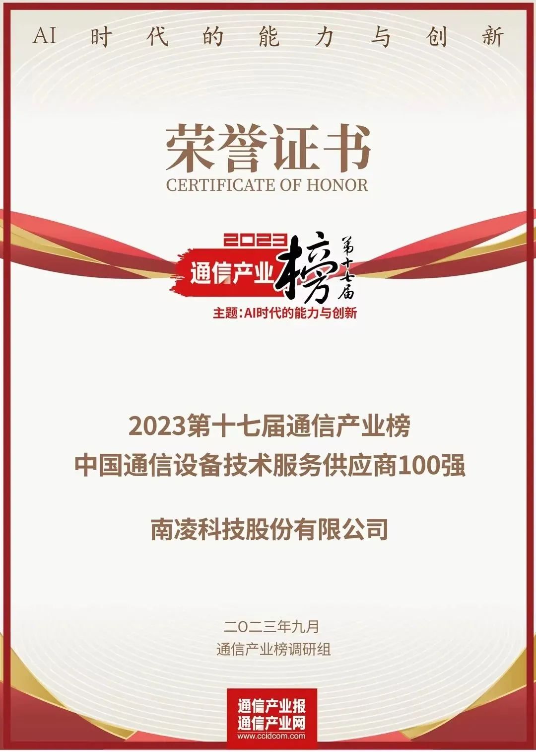 9月25日,第十七届通信产业榜重磅发布,南凌科技与华为、中兴、英伟达、奇安信等行业龙头企业共同入选“中国通信设备技术服务供应商100强榜单”。可见,南凌科技踔厉奋发,再次获得行业认可。