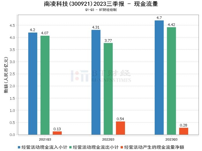 在现金流量方面,南凌科技2023年三季度的经营活动产生的现金流量净额为2823.32万元,较上年同期的5449.14万元减少。经营活动现金流入小计为4.7亿元,较上年同期的4.31亿元有所增加。经营活动现金流出小计为4.42亿元,较上年同期的3.77亿元有所增加。