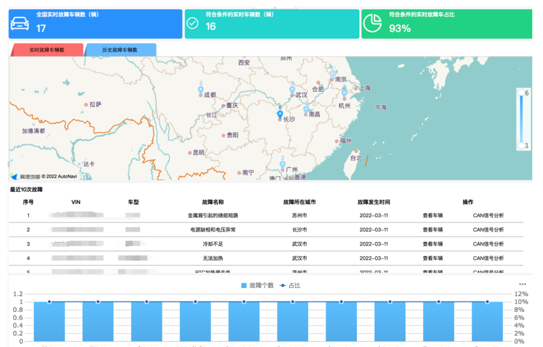 故障分析:实时故障、故障车辆、故障次数、故障诊断