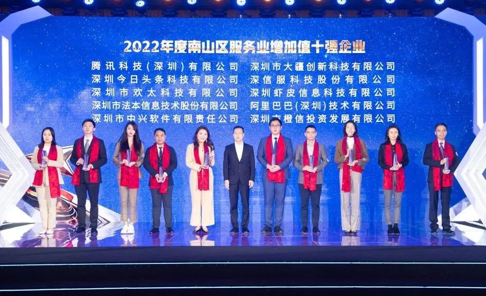 2月24日,深圳市南山区举办2022年度南山区经济突出贡献企业TOP峰会,隆重表彰2022年度各行业增长突出贡献十强企业和纳税百强企业。