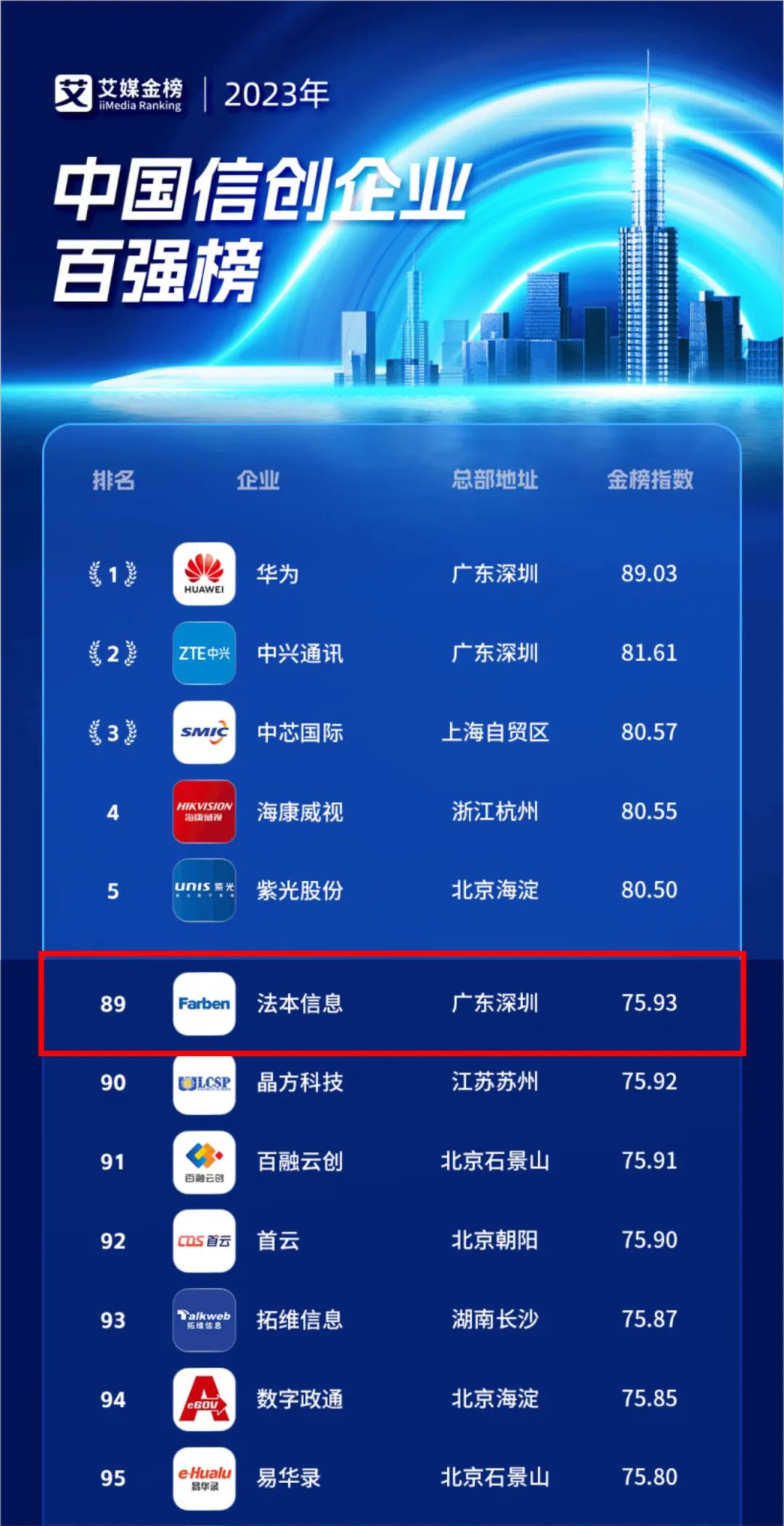全球新经济产业第三方数据挖掘和分析机构iiMedia Research(艾媒咨询)近期发布艾媒金榜《2023年中国信创企业百强榜》。法本信息凭借卓越的自主创新技术与信创产业建设成果,再度入选榜单,且排名较2022年更进一步,与华为、中兴、阿里云、腾讯云等上榜企业共同领衔中国信创产业发展。