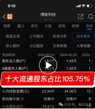 今天,博俊科技刷屏了,各大社区平台纷纷在吐槽博俊科技流通股持股超100%。有网友直接作图,还有网友疑问:为啥十大股东流通股占比能达到105%?还不算散户的?