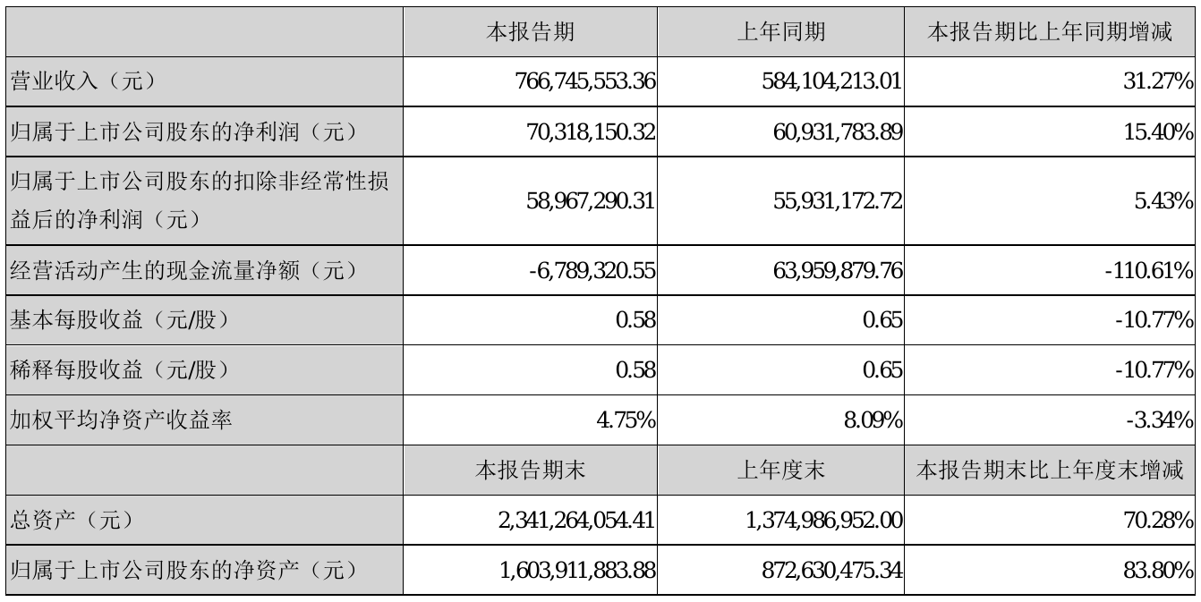 8月27日,三友联众(300932)近日发布2021年半年度报告,报告期内营业收入766,745,553.36元,同比增加31.27%;净利70,318,150.32元,同比净利增加15.40%。