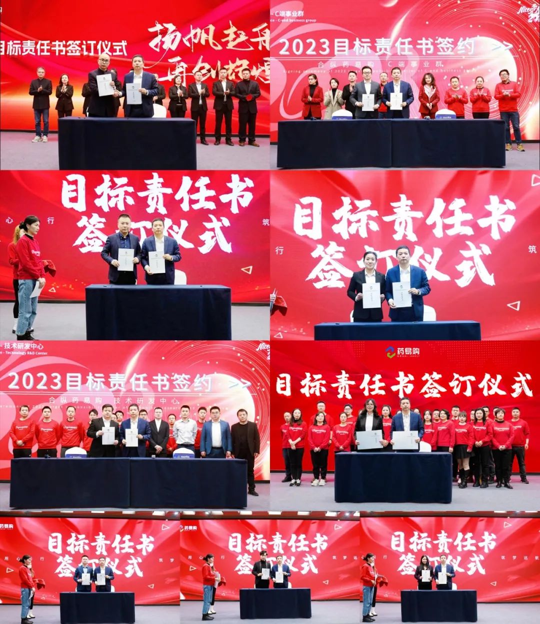 此外,药易购副董事长兼总裁陈顺军还分别与各业务部门负责人签订了《2023年度目标责任书》,全面落实工作任务目标责任制,明确任务分解路径,推动公司规范化、制度化、契约化建设,确保高质量高效益完成下一阶段各项工作目标任务。