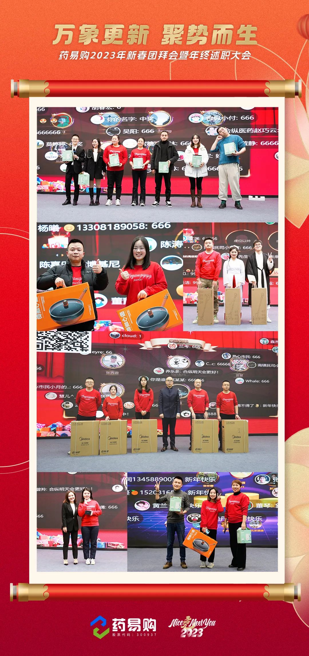会上,药易购董事长李燕飞首先向所有关心支持药易购成长的行业内外各界朋友致以新春的美好祝福,她表示,在全体员工的共同努力下,药易购在2022年实现了高质量发展的预期目标,并取得了诸多里程碑式的优异成绩。创新与变革,是驱动公司前进的重要动力,如今我们迎来了崭新和充满信心的2023年,面向未来,公司将持续保持发展定力、强化责任担当、创新工作举措,在实现个人与公司跨越式发展的同时,纵深推进医药产业协同并进,共促各项重点项目落地见效,共筑立体开放合作新格局,加快打造具有行业竞争力和区域带动力的现代化医药生态圈,携手更多合作伙伴实现全渠道同频共振,共谋增长,为服务国家战略全局和医药产业发展大局作出新的更大贡献。