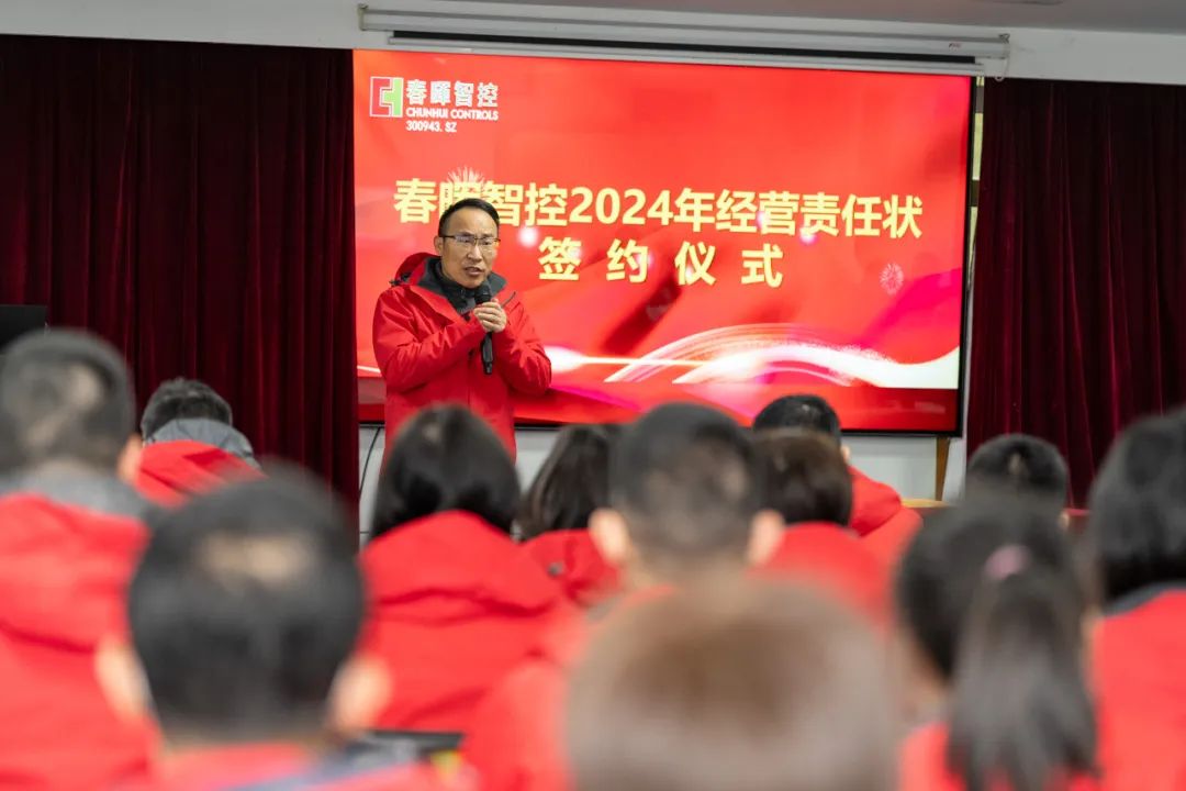 2024年2月4日,立春,俗话说的好:一年之季在于春!在这个充满朝气和活力日子里,我们举行了2024年经营责任状签约仪式。在会上,公司总裁於君标先生对经营责任状的签约进行了说明,公司考评委主任倪总监对2024年与2023年经营责任状考评差异进行了说明,各子公司总经理分别对2024年的经营目标进行了阐述,并对此需承担的责任进行了承诺,最后公司董事长重新解释了公司的发展战略,并鼓励大家再接再厉,2024年大展龙图-再创业!