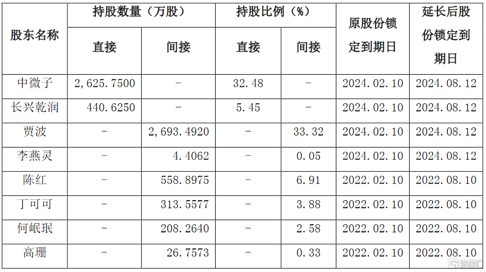 公司控股股东、实际控制人、长兴乾润以及间接持有公司股份的董事、高级管理人员持有限售流通股的情况及此次延长限售股锁定期的情况如下表所示: