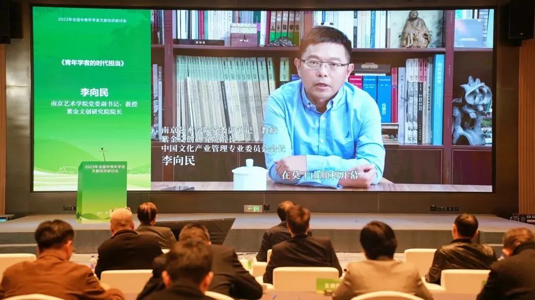 南京艺术学院党委副书记李向民以《青年学者的时代担当》主题以线上形式发言。他指出,当今文化旅游产业正面临重要的转折期,研究者要加强时代性,提高理论自觉、理论自信;要深入产业实际,进入一线进行调查研究;要贴近科技前沿,利用数字技术拓展研究边界。