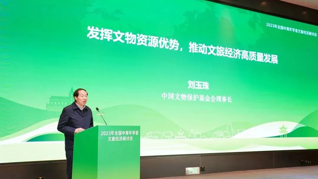 中国文化保护基金会理事长刘玉珠以《发挥文物资源优势推动文化经济高质量发展发展》为题作主旨演讲。他指出,作为中青年文旅研究者和经营者必须从市场需求出发。要拿出有分量、有针对性的研究成果,一是要善于学习、独立思考、勤于动手、深入实际。二是要紧跟时代要求、紧扣市场主题、善用科技赋能、注重融合创新。三是要关注社会力量,寻求政府与社会力量合作的文旅发展创新模式。