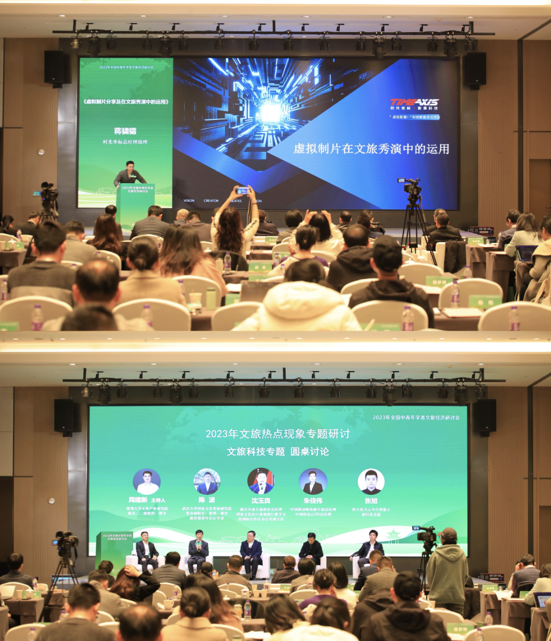 文旅科技专题由深圳大学文化产业研究院院长周建新主持。百度云华东大区政务行业总经理肖文珍介绍了百度智能云在文旅行业的创新探索,生动呈现了百度数字人和文心一言大模型的应用场景。中国移动咪咕新空副总经理朱佳伟从景区的经营管理、文旅IP的创新、跨界互动玩法等角度,展现了文旅元宇宙的实践应用。中南卡通股份有限公司总经理沈玉良为我们全景呈现了数字科技如何赋能动漫文化的产业创意、生产、传播、消费等全产业链发展。华兴控股集团副总裁赵亚雄重点介绍了江西吉安后河的夜游庐陵项目,解读了沉浸式光影的夜游产品如何实现传统文化和现代科技手段的深度融合,提出可持续、可引领性特色文旅产品的发展愿景。科大讯飞云平台智慧文旅行业总监张旭分享了数字人导游的实践案例,展示了技术迭代下数字人导游打造智能化服务、提供个性化旅游体验的复合功能。时光坐标总经理助理蒋骕骦介绍了虚拟拍摄如何将现实世界的实景拍摄和计算机生成图像的能力相结合,创造出可视化互动性的拍摄环境。