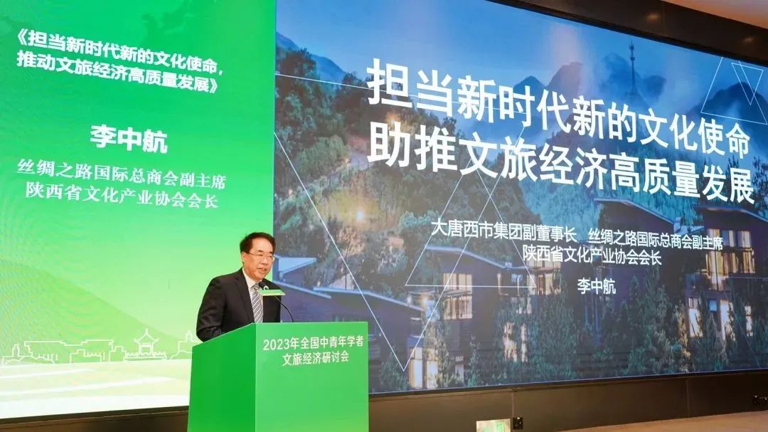 丝绸之路国际总商会副主席李中航作《担当新时代新的文化使命,推动文旅经济高质量发展》主题发言。他指出,商会组织是现代市场经济的重要环节,赋能文旅产业高质量发展,商会组织在聚人气、促合作、搭桥梁方面都具有独特优势。
